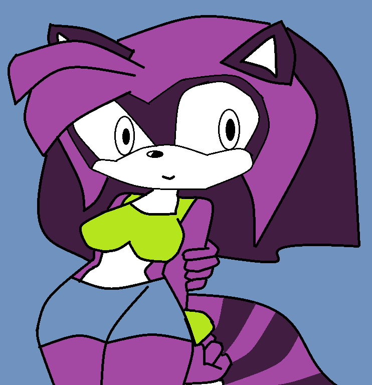 light and dark purple fur eyes are white (she's not blind) muzzle and chest are white
