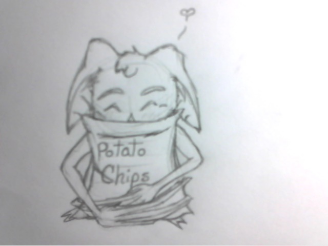 just a drawing i did of my char lucient loveing his fav munchy potato chips