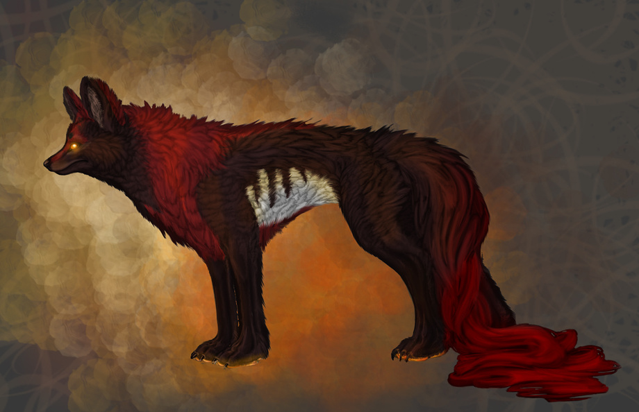 In time, the wound healed as if it never happened, but the mark remained. Where once there was beautiful silky black fur now grew hideous crimson hair. As her kin grew, she became an object of bad omens to her family.