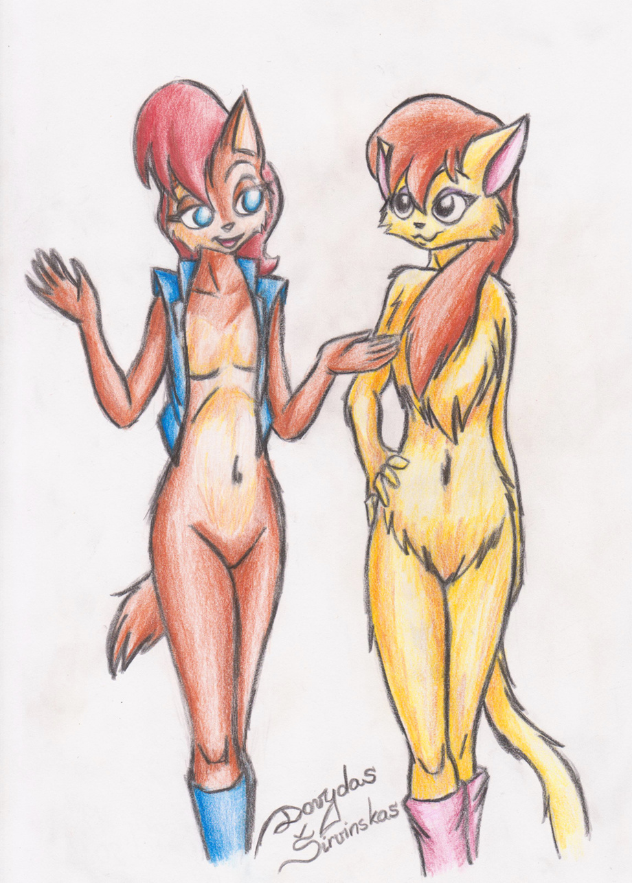 Here you go, another drawing of two pretty, barely clothed females :3