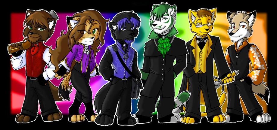 Tada! I wanted to do a group shot of the forum regulars, but it was more fun to give the group shot more of a theme. I'm really happy with how this turned out. Took me about a week to get everyone drawn and get the whole thing put together.