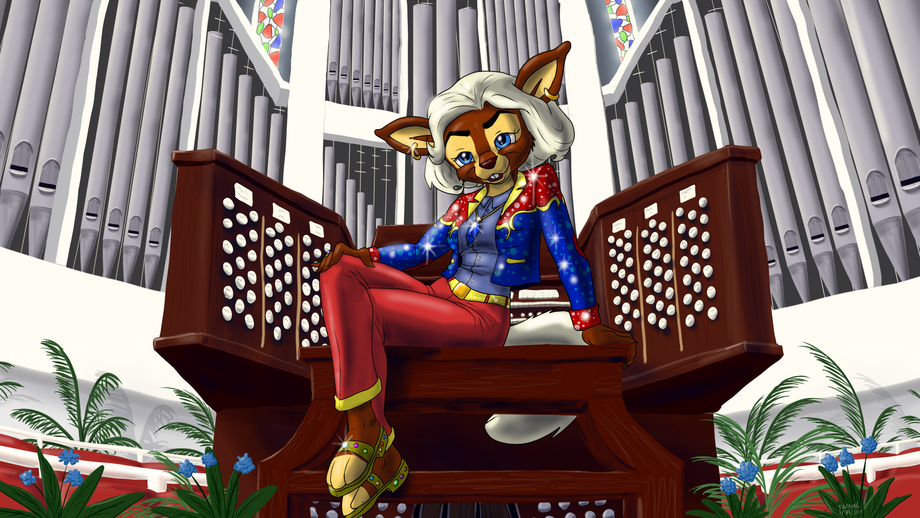 Several years ago I decided I needed an organist for the Chipmunk Kingdom. After all music is something the chipmunk kingdom is renown for. Based heavily upon Diane Bish my favorite organist, this character named, Dean Debisha, is the perfect organist to lead many of chipmunk congregations in song. Dean Debisha played a pivotal roll in saving and preserving the beautiful music of Chipmunk Kind from being destroyed by the oppressive Inner Circle.
