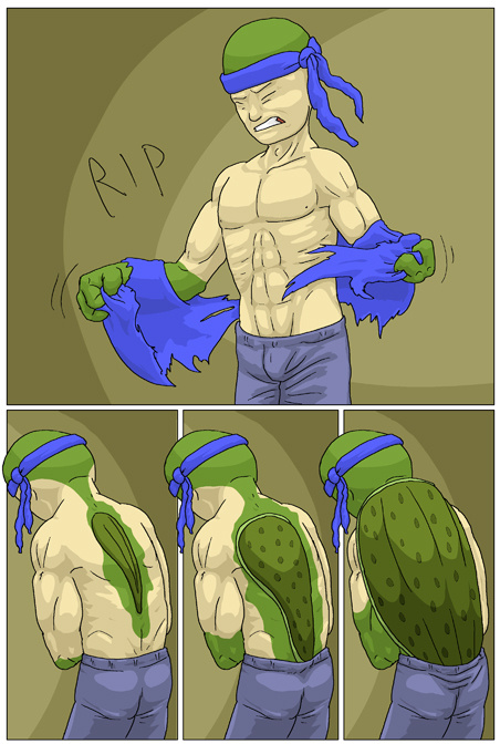 And here’s the end of “Turtle Fan” as I originally presented it in my webcomic Subject To Change! He's the kind of boy who'd PROUDLY say "I LIKE TURTLES!"