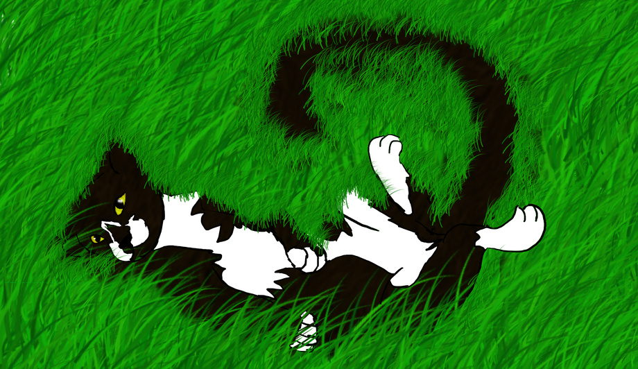 This is Ziggy. He was a male tuxedo short hair cat. He was my baby. And he has past away. On October 14th, 2013, he got sick. Too sick for me to afford. So to keep him from any more pain, I let him go. I have his ashes in my room, and now I imagine him as a large black panther with his markings. He loved to lay on his back and expose his belly. He also loved belly rubs, long as you were gentle. So, I drew him as I imagine him in the next plane. On his back, sunning his belly while he waits for a friend to play with. If he looked hard enough he might find Dende, the black/white rat I had before him. Dende passed from a sudden lung infection. Dende was only a year old. Ziggy would have been 8 years old on this up coming 3-21-14. I miss him every day. And now I miss them both, every day.