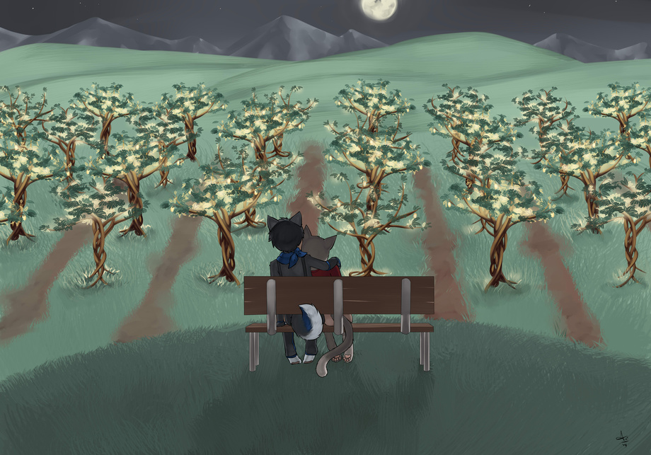 Just taking my amazing boyfriend for a walk through our cookie orchard at fullmoon.