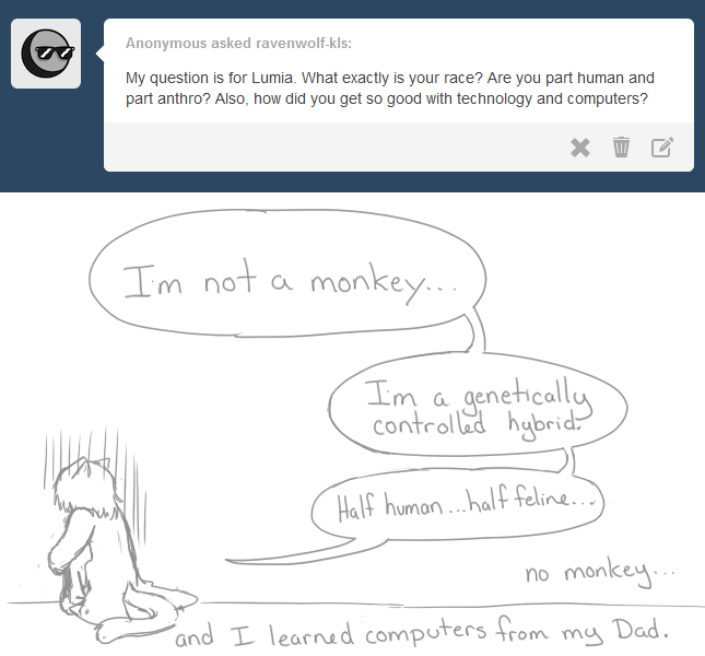From the Raven Wolf Tumblr page, to see more asks or even ask a question yourself -