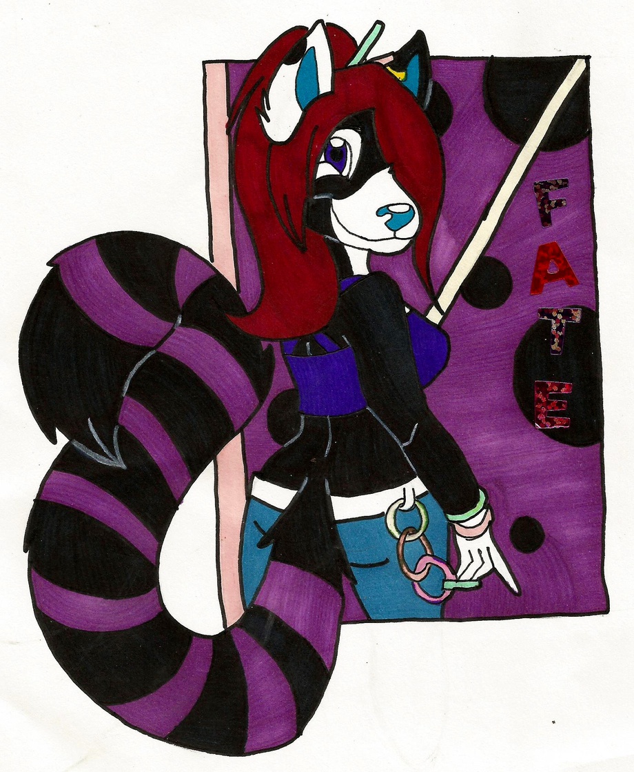 Here is a rave badge i did for Fate Darkstar on facebook. i love how this one came out. i know you cant tell from the scan but i used neon sharpies for the glow sticks in the hair, background, bracelets and chain. I am currently doing rave badges for $10 for those who are interested ^.^