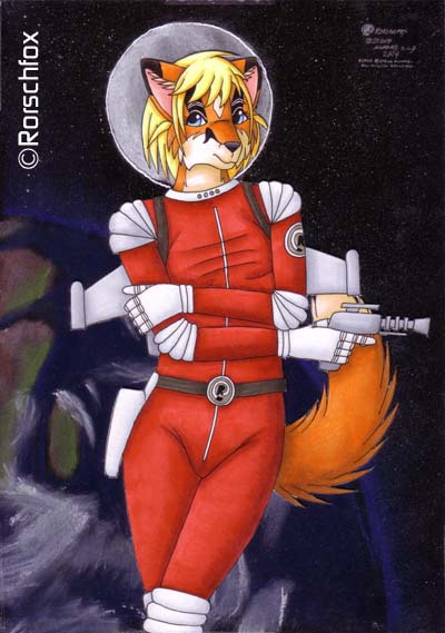 Here's Space Vixen Blaze, complete with her 50s-styled spacesuit and ray gun, ready to defend the Earth! (Although defend it from what, I really don't know...)