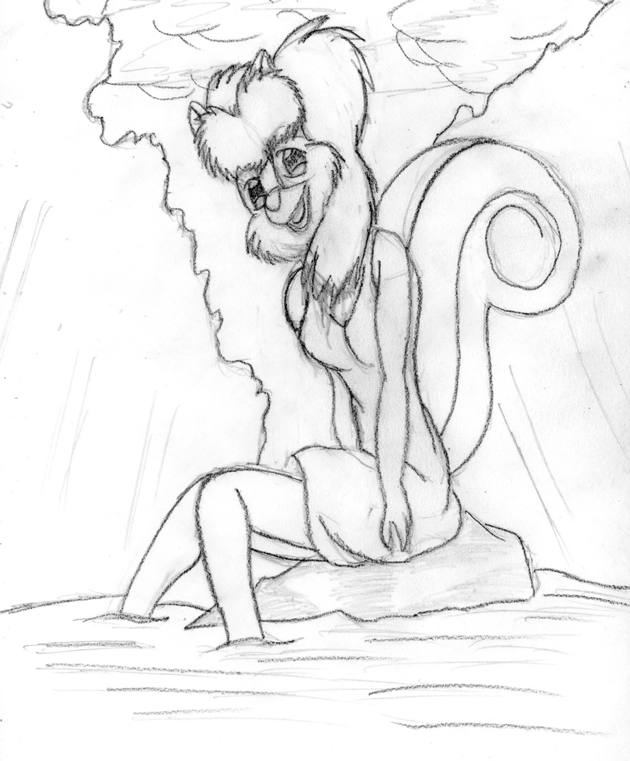 lucy sitting by a forest stream rough idea