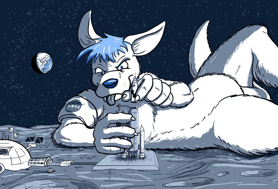 ...is not rooth's strongsuit. However, he's the most suited mega marsupial for being able to physically jump off of the surface of the Earth and land on the moon by his own power, so he gets to bring all the parts and supplies and materials up to the lunar base. Hopefully they won't lose too many parts to fumbled fingers...