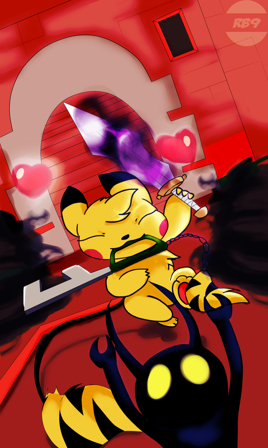Ladies and gentlemen I'm quite proud on the hours of making sure the pose and characters are exactly where they need to be and yes it's a Pikamew fighting an group of lower level heartless...:)