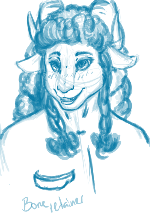 He even wears a retainer fashioned from whale bone. Story behind him is he is ancient norse and lives in a pretty primitive village, but hey they can have some new age tech right? They just call it magic.