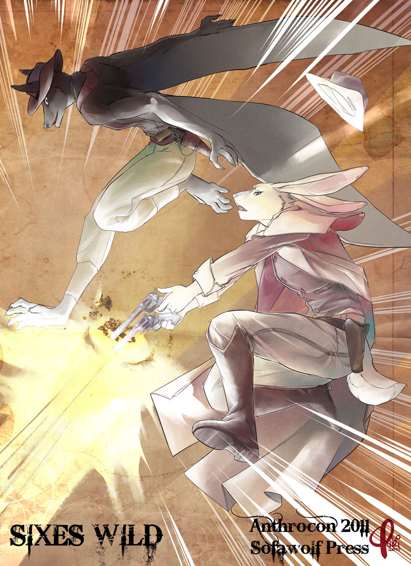 Well, folks, Sixes Wild is back! It's been a long time comin', but keep in mind I wrote the ENTIRE NOVEL since I last posted in this series. Sixes Wild: Manifest Destiny premieres at AnthroCon 2011-- I'll be there signing copies. : ) For those not going to AC, it will be available online on the Sofawolf Press catalog immediately following the con.