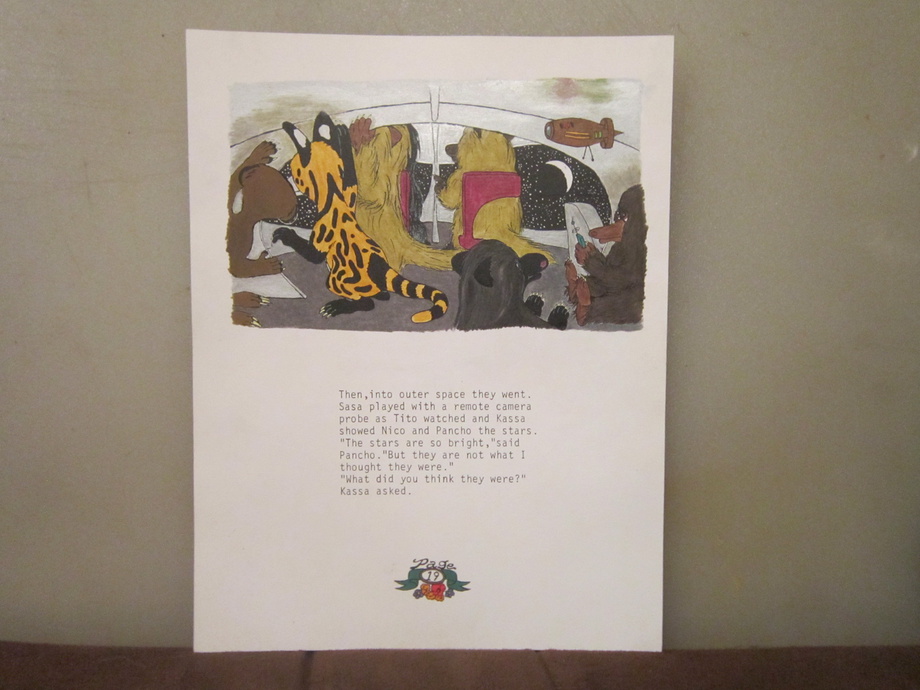 These are the original pages of "Nico and Pancho Meet a Friend From Far Away" in their non-cropped form, showing the full amount of the drawings, and with the original typewriter text, as it appeared in April of 1995. Notice the cover of the original version has incorrect grammar, "meets" instead of "meet", which has since been corrected. At the time of the creation of the story, I, not having more than a 7th grade education, did not know which was correct, and everyone I knew didn't know for sure either.