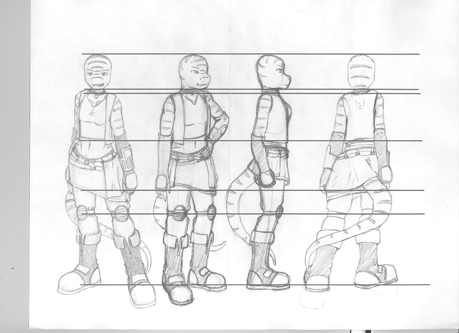 I used to do 3D modeling. This was a practice turnaround for just such a project, intended to be used as a map to later build the model on top of. The 3/4s view was added a fair bit later, which is why it looks odd against the other three.