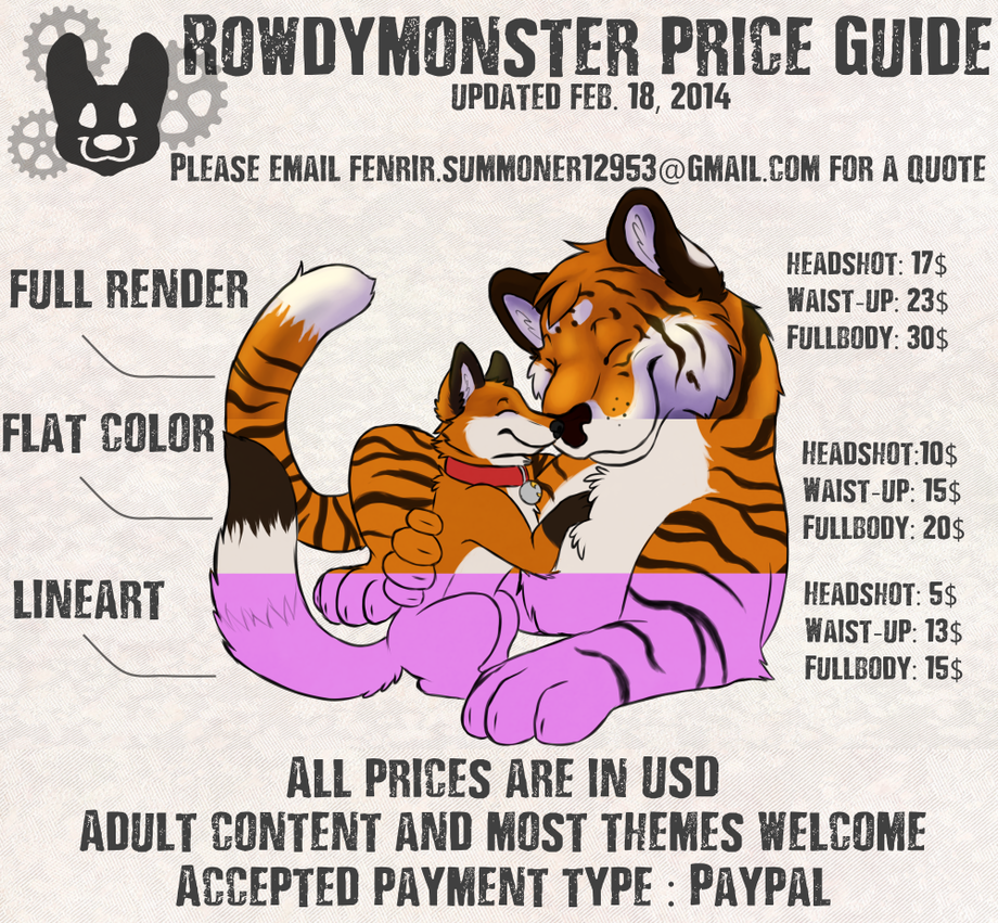 Interested in getting something? Email me at fenrir.summoner12953[at]gmail.com with the subject as "Commission" or something of the like so I don't overlook it! Please fill out any and all info you can below and be sure to send it in the email