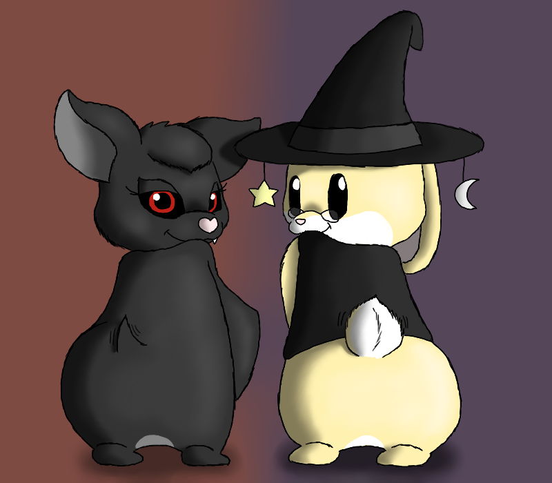 Two evil yet cute characters of mine that I'm sure most of you know by now. Battyboo and Butterball showing off their adorable rumps. Who has the cuter rump? Also you can touch, but I'm sure it won't end well for you. Enjoy!