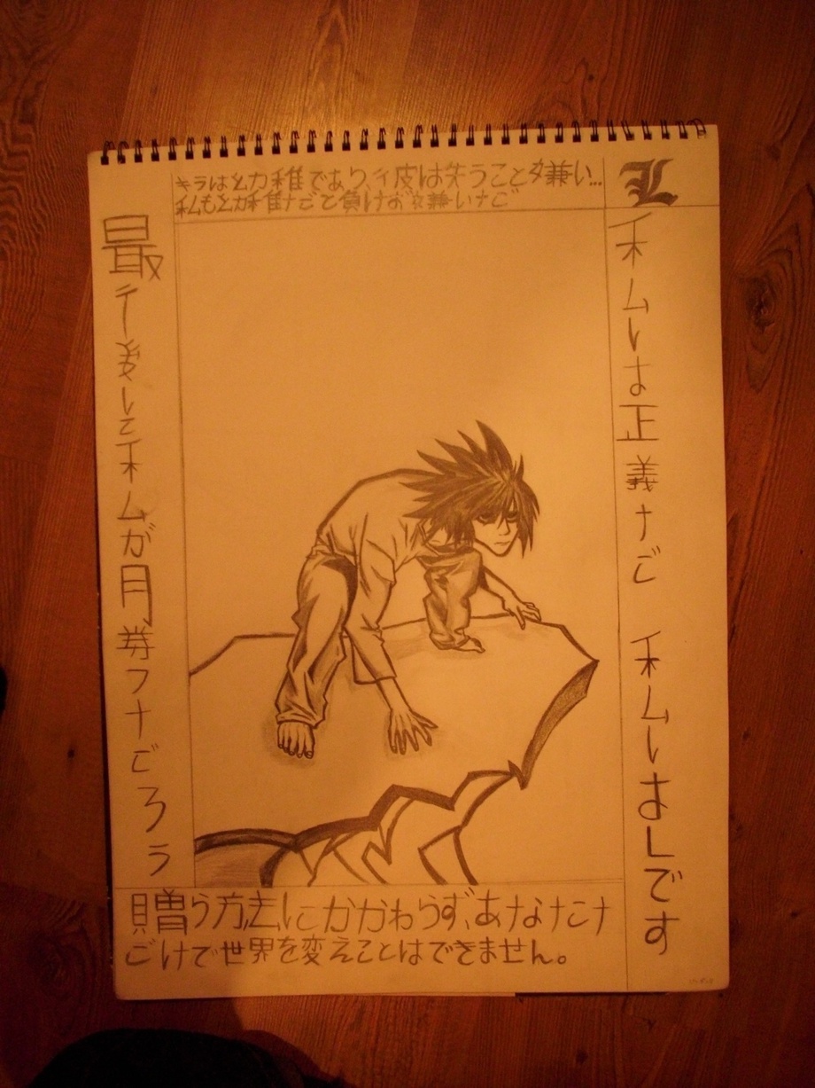 A drawing of L form Death note that I did for my art class.... sorry for the crappy photo quality.