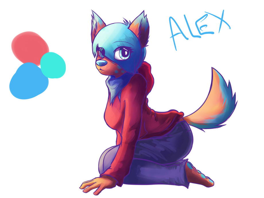 Made a new character for myself. Her name is Alex, she is 4ft 9 and a very colourful husky. I'll draw some more of her soon. Maybe.