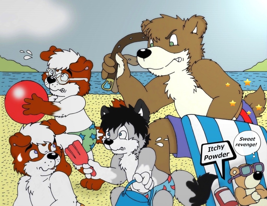 After a while, a very angry Tony was with a belt in his big paw! "Who of you threw me itchy powder in my swimsuit?My rear end has incredible itching!"