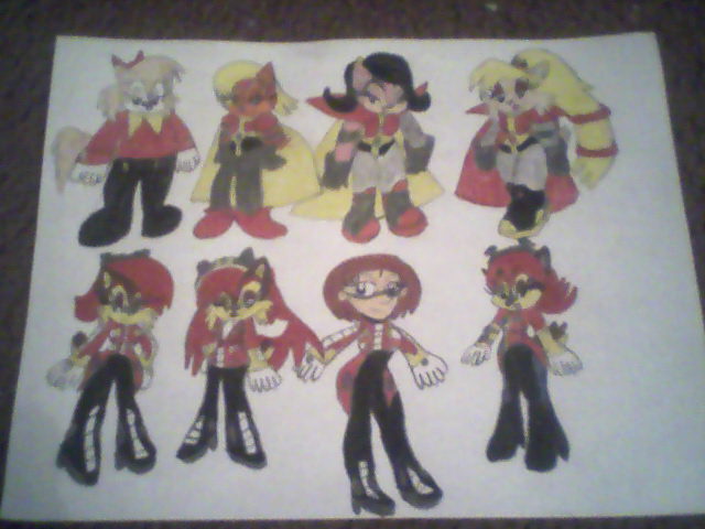 This is just for fun. Fleetway Sally as Classic Eggman, Red Sally as Aosth's Robotnik, Pink Sally as Satam's Robotnik, Princess Acorn as Sonic Underground's Robotnik, Short haired Sally as Modern Eggman, Long haired Sally as Sonic Riders' Eggman, Elise as Next Gen's Eggman and Rebooted Sally as Sonic Boom's Eggman.