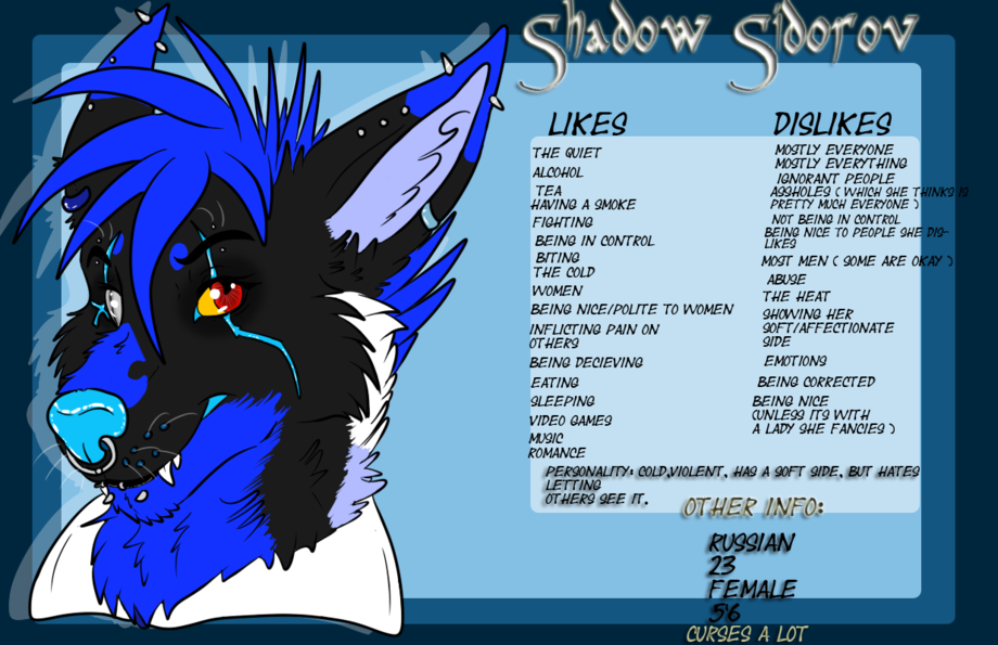 ID sheet for Shadow. ( one of my sona's, Hunter is my main one, but Shadow is still me! )