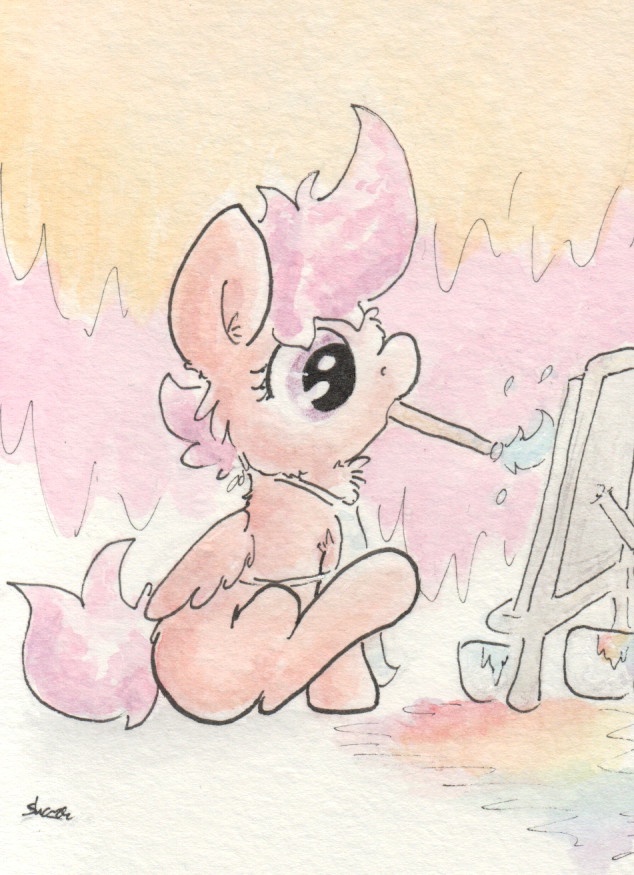 The leg tilt is so cuuuuuuttee. What an awesome pose. Maybe she's drawing a Rainbow Dash?
