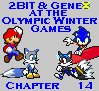 They might have obtained all the emeralds and orbs, but 8BIT still had Power Stars in his possession. So, the group continued across the bridge. It led to the back of Bowser and Eggman's fortress, which contained a large sculpture of both villains' heads. However, Bowser and Eggman were nowhere to be found. Instead, the heroes found seventeen more heroes, most of whom they'd met during their adventures on the other islands. Tails, Knuckles, Amy, Shadow, Silver, Blaze, Vector, Toad, Luigi, Donkey Kong, Peach, Daisy, Yoshi, Wario and Waluigi were all there. Of course, Mario and Sonic themselves were there, as well. They greeted 2BIT and his group of companions cheerfully. "Well, well, it's Copter and his crew. You're late to the party! We already sent Eggman and Bowser packing!" Sonic informed them. "Oh, what a shame, we missed the millionth time Eggman was defeated." Bucky said sarcastically. Mario remained as silent as ever, simply waving to all the newcomers. Luigi was more talkative. "Never mind that you missed the bad guys. You're just in time for the celebration!" he said. Gator jumped for joy. "Yay! The battle's over! Let's watch the credits!" he cheered. 2BIT shook his head. "It's not over yet. Mario, did you realize that the Power Stars have been stolen again?" he asked. Mario held his head unhappily. "Oh, no!" he gasped. "But we beat Bowser and Eggman twice, and they never mentioned any Power Stars..." Toad said. "It's not those two we need to worry about." Copter warned. "Aw, you guys are just being killjoys. Who else would try to mess up the Olympic Winter Games?" Vector said. "The Narrator, for one..." Jimmy joked. "Just for that, I'm not going to warn you about what's about to happen!" the Narrator retorted. "Yoshi? Yoshi yoshi?" Yoshi said, looking upwards. "Yeah, what's gonna happen?" Wings added, translating Yoshi's words for those who couldn't understand. Suddenly, the Bowser and Eggman sculptures exploded, and Bowser and Dr. Eggman emerged atop the rubble! "We're back!" Eggman said, laughing. "You didn't really think we'd quit after losing a couple Olympic events, did you?" Bowser roared. Mario and Sonic were first to approach them. "Back for more? You don't know when to quit!" Sonic said. "Here we go again!" Mario added.