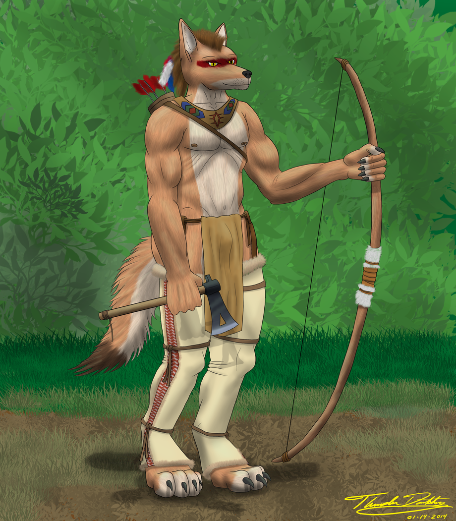 I can't believe that I actually got around to finishing this. I powered through and did some old fashioned power art of my updated fursona. Complete with breechcloth, warpaint and such. And yes... I do actually have a mohawk haircut IRL. :3