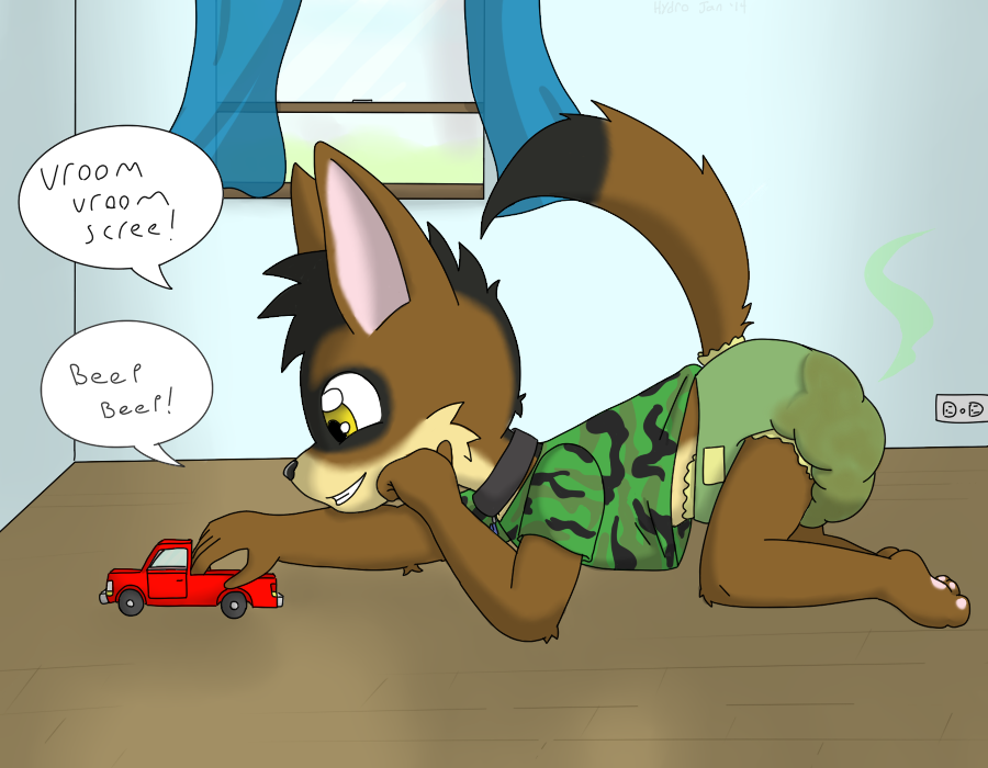 he sure had to go while playing. he to busy to care about his messy bottom ^^