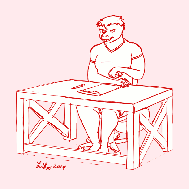 sadly, I was busy tonight. Maybe I hit the next one. He looks good there. The table makes me think he's out at a park writing with its design, or possibly in an open air balcony thing given the chair. It's quite annoying when things just don't work out when writing.