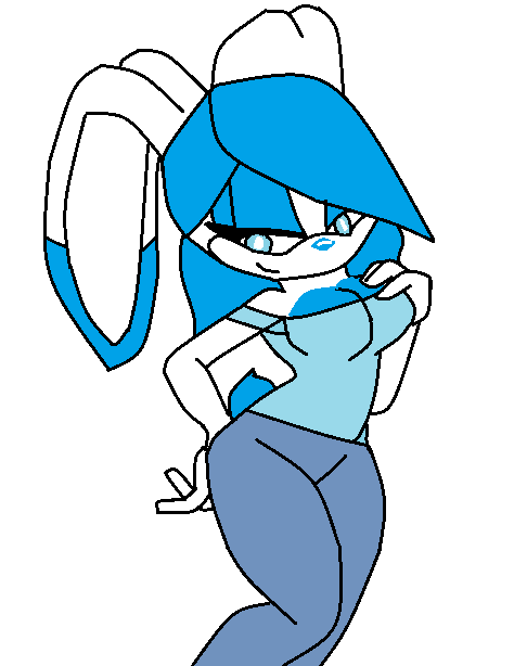 White base fur, blue pattern marks on her body, blue eyes and nose, blue chest and belly.
