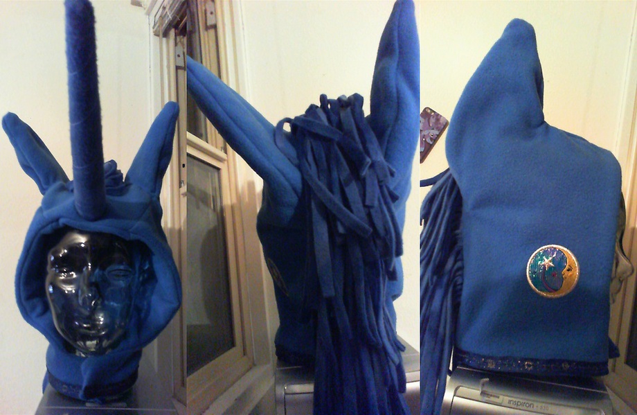 This Princess Luna hood is made of Blizzard No-Pill Fleece and is one-size-fits-most.