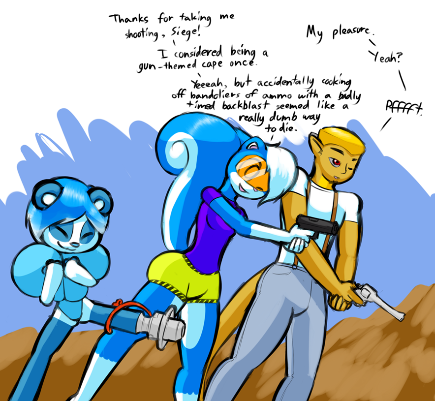 decided to take vigilante hero Blastcannon and walking weapons platform Lin-Lin to the firing range for some good old-fashioned target practice. Siege clearly knows how to show lovely ladies a good time.