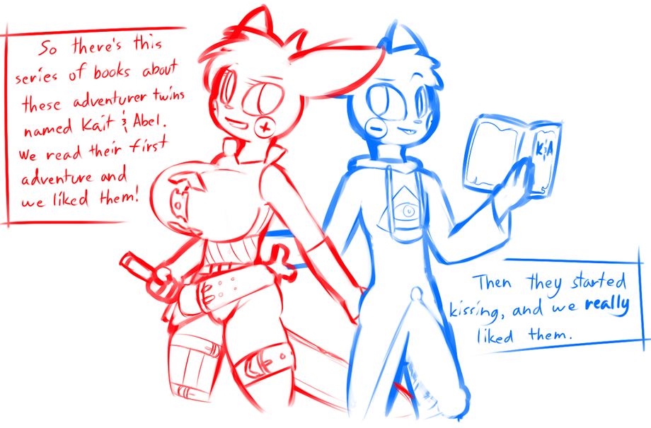 A warm-up for a Noristream involving Glint and Spark cosplaying as another incestuous pairing of characters made by Norithics and [iconname]PonderousPlatypus[/iconname] known as Kait & Able.