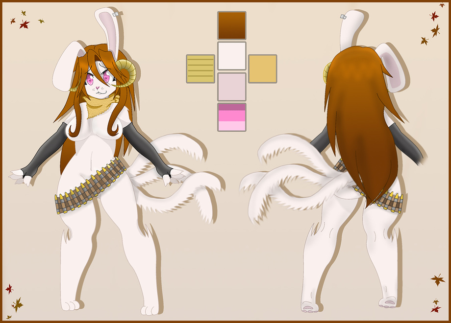 B.B. is a angora rabbit, with some mixed demonic heritage. This is most apparent due to the curled horns on either side of her head, as well as the trio of rather lengthy tails. She, however, refuses to talk much about her parents or possible demonic taint.