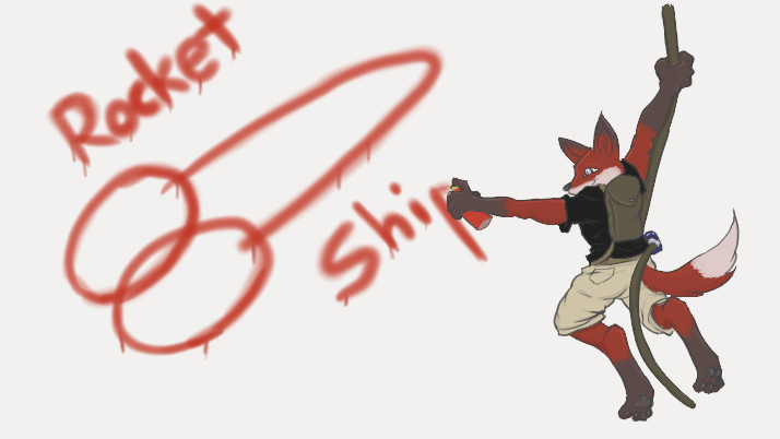 Red Rocket indeed. Very naughty fox. Pose works, but he'd have to be extremely agile and have great grip strength to maintain that pose long enough to draw that "ship". The torso seems a little short to me, otherwise anatomy works well. The dark color of his "Socks" could be drawn up a little higher perhaps, but it's more a personal choice than any problem. I'd say he needs more neck, but the pose wouldn't show it too much with the backpack and shoulder hiding it.