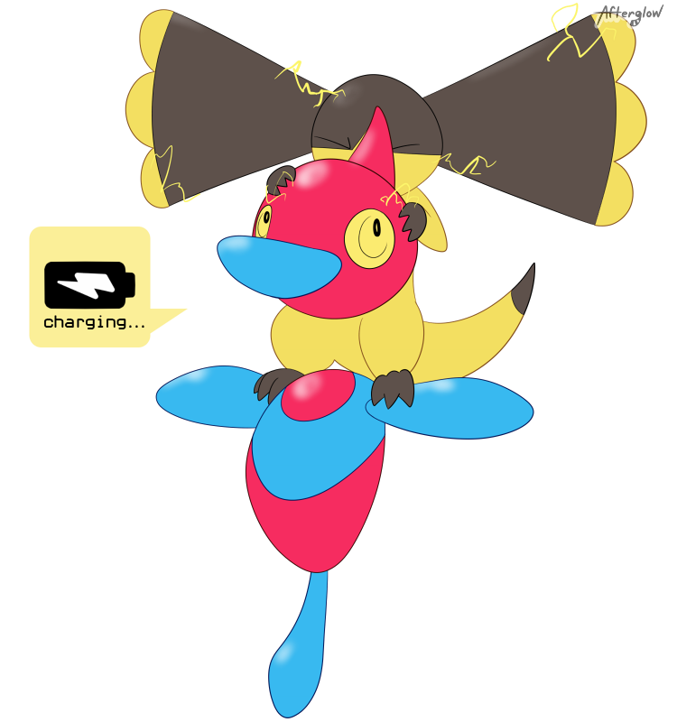 With a body similar to Ampharos, mushroomy (and kangaroomy) features, and raptor-like claws.
