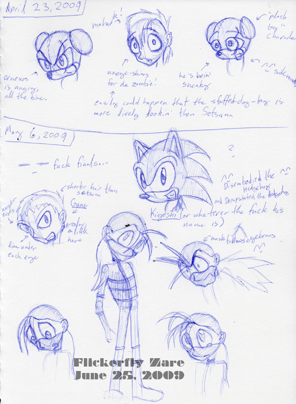 ^_^ Sketch page, some Setsuna and Ornexos, one Sonic, and a character from something I was writing with a few friends last year, Useless University Defense. I was considering pulling the story out from being defunct, but ultimately decided against it. Still, I'd drawn up some characters, and I like how they look.