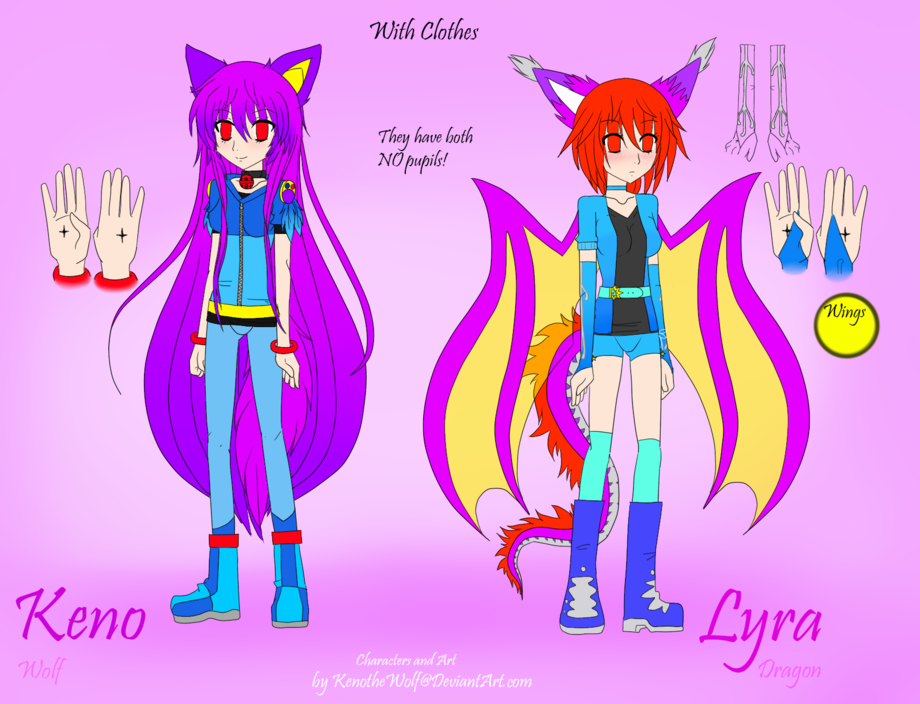 Character Sheet for Keno the Wolf / Lyra the Dragon
