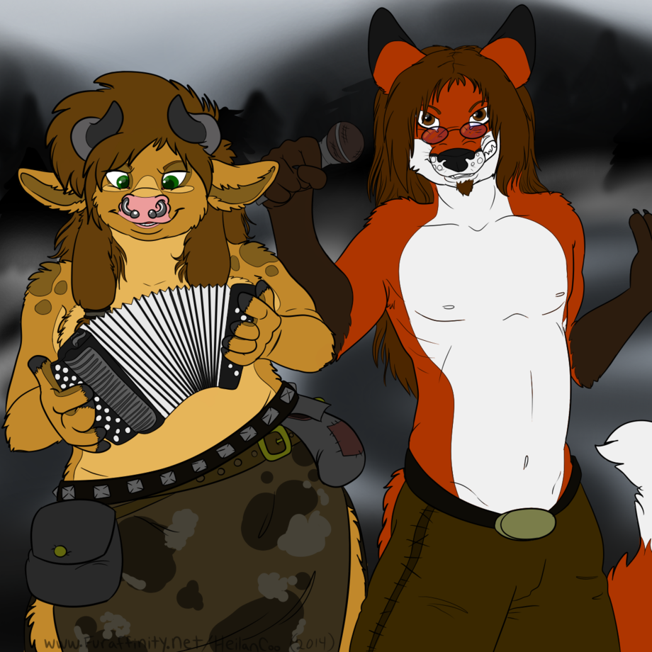 This is gift art from HeilanCoo featuring her fursona and mine as a tribute to folk metal. I was surprised to see this picture today and grateful for it as well.