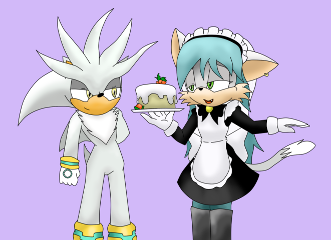 Here is a pic of Johnny in his maid outfit offering some cake to Silver the hedgehog! Have to say I love this one for the outfit and his cute blush~ ^//^