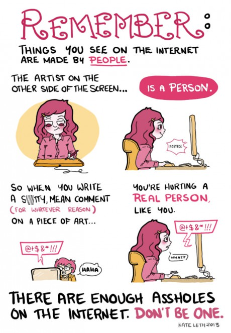 It can't be said often enough. Come to think of it, it would make a nice popup whenever someone wirtes insulting comments (sprung via vocabulary check) - maybe with a 5 second delay before it can be clicked away.