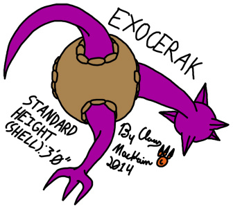 Another revisited monster from Over World. For those that don't remember, Exoceraks have a hard rock-like shell and its core is polymorphic and can change its form through openings of its shell. If the shell is broken, it has free reign over it's polymorphic abilities and can change its whole body rather than just for branches of tentacles.