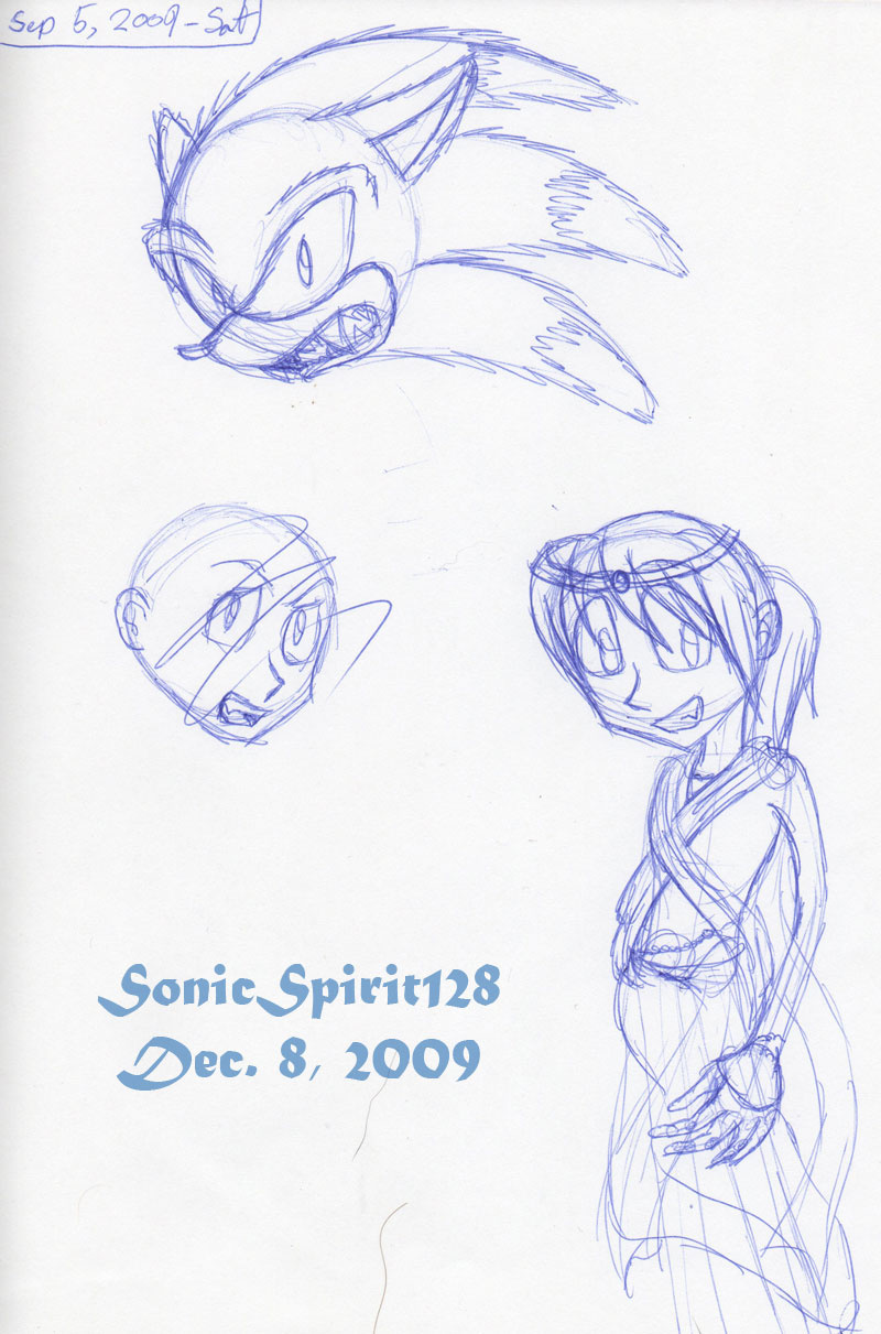 A sketch of the werehog-head, and Lucy, my character in Amber.
