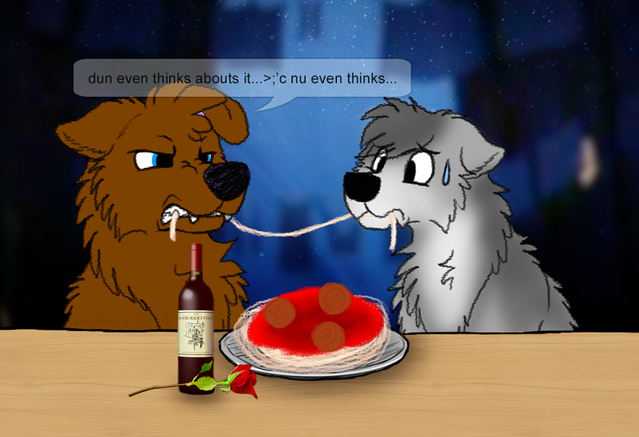 and if for whatever reason, virtually or otherwise you feel compelled to try and act out that scene with the pasta from lady and the tramp, walk away, fudging walk away, I don't wan't to waste foods by nu eatsings its or unceremoniously putting it into a bless u (tissues/handkerchiefs...)...but I also don't wanna risk swapping spit with someone who is sharing the same food I ams...redchibi is be uncomfortable with this...plus the medication i'm on might makes u sicks...so there's that too...