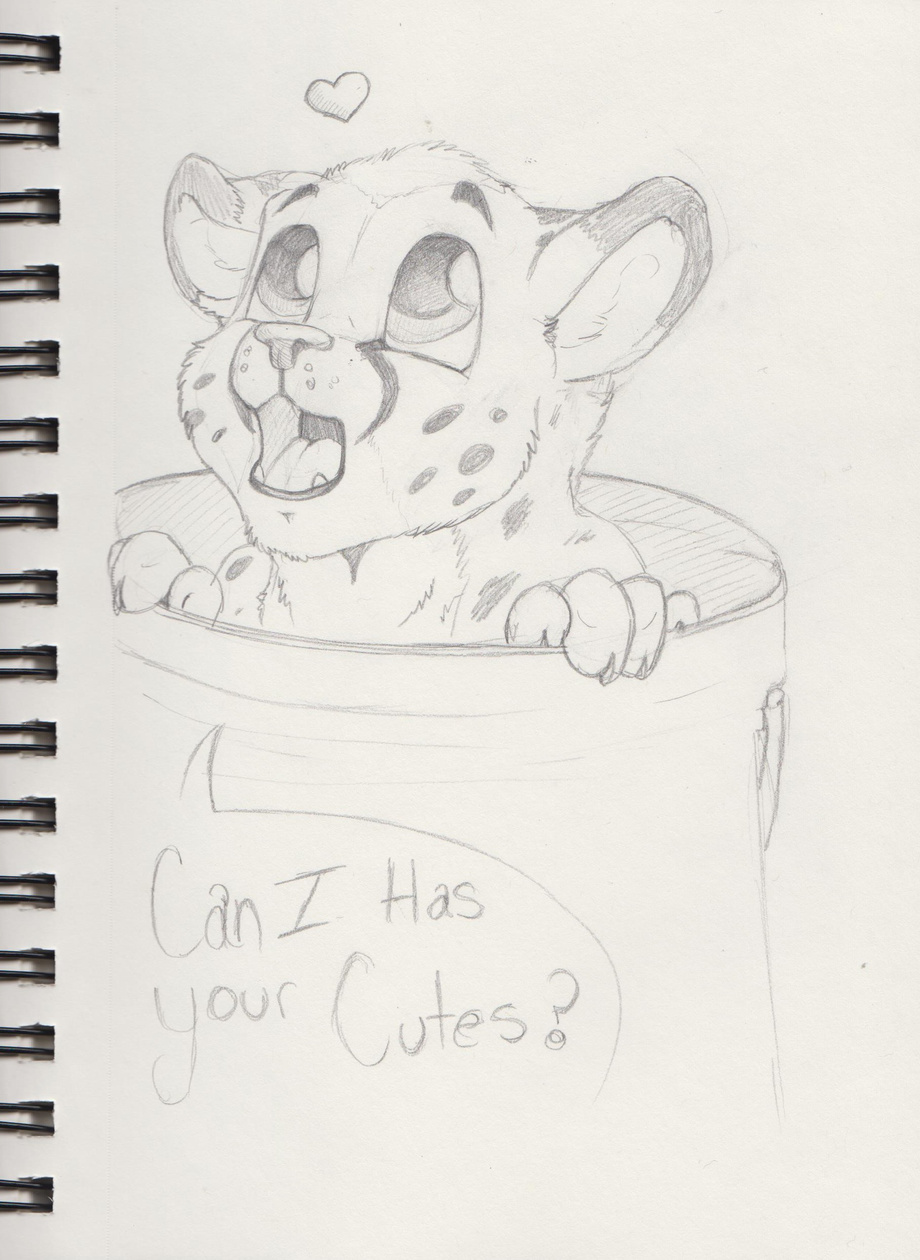 A sketch of Cheetahjab's character being all cute and in a bucket.