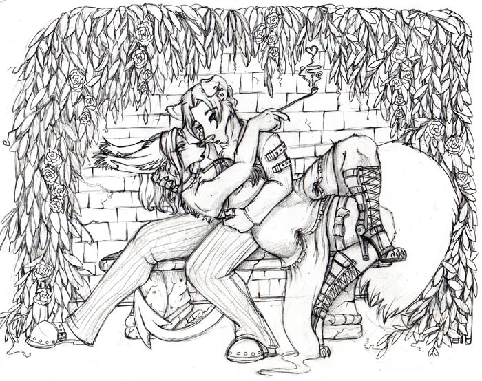 Old drawing, once again! I'll get to the new stuff eventually. A gift for my (now ex) boyfriend, who's still a close friend of mine. I remember how much I enjoyed working on this piece.