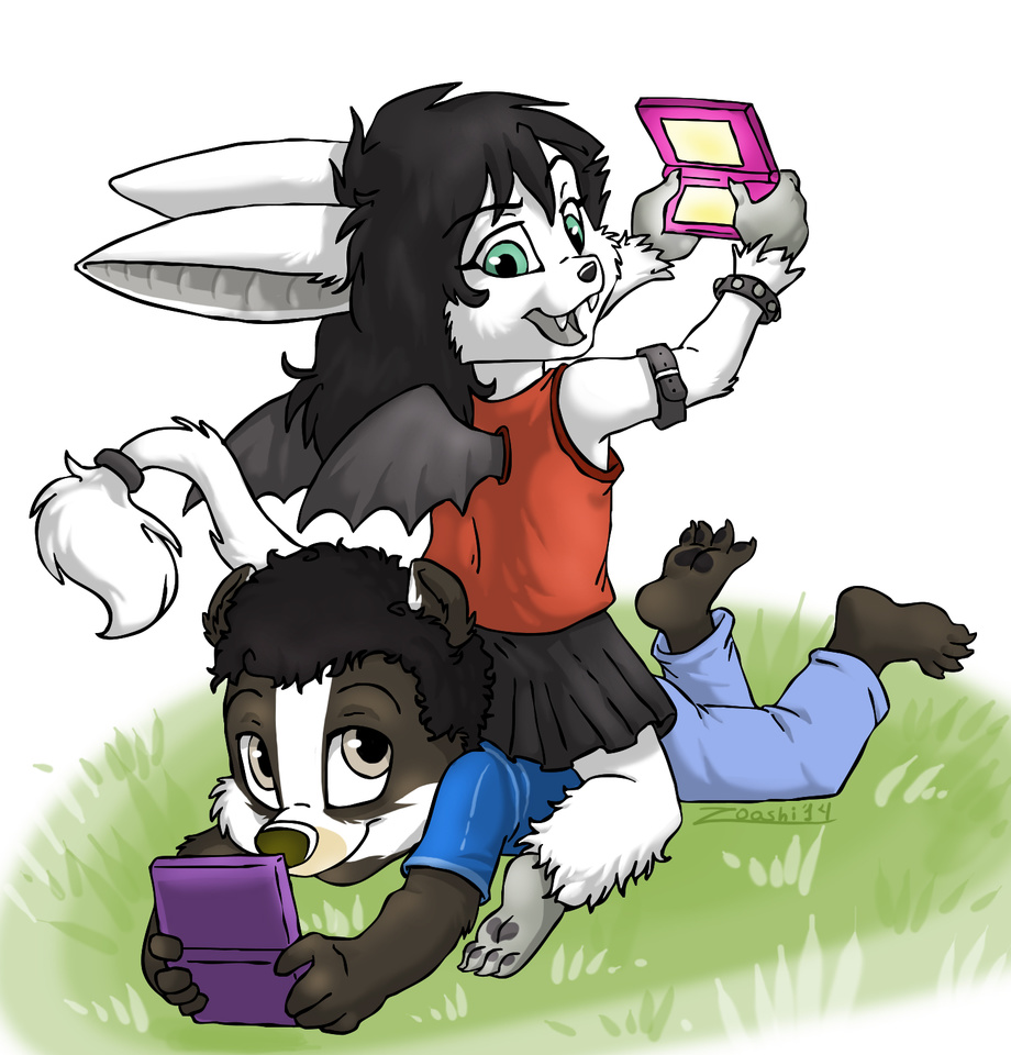 Two good friends playing pokemon.