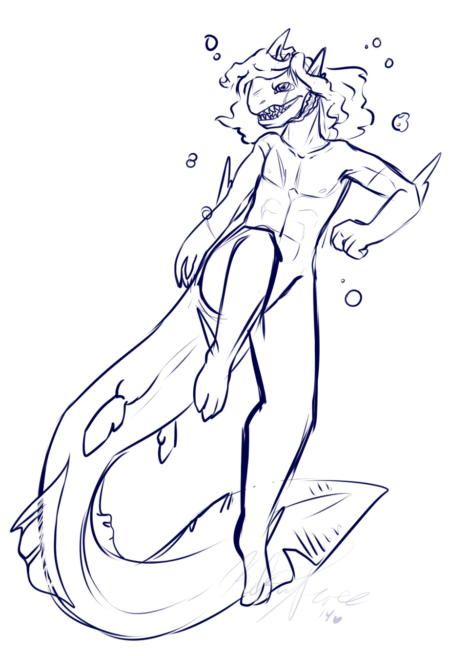 hehe, hmm, i might go ahead and make some changes, hive him the gills on his neck instead.